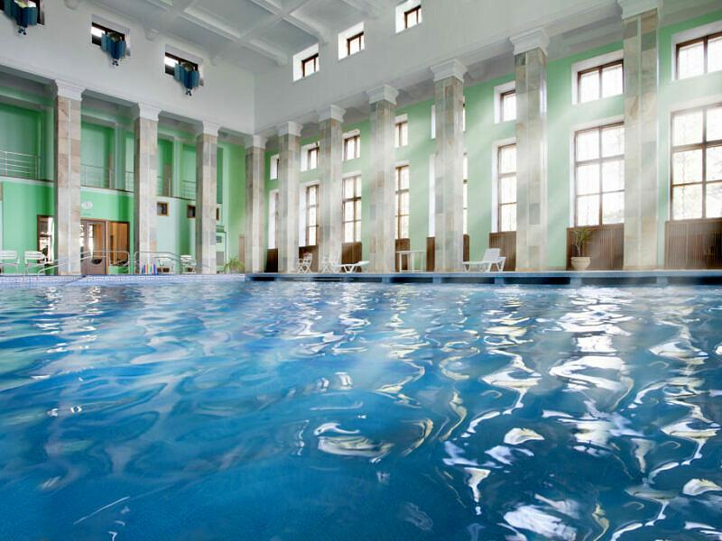 В санатории круглый год работает крытый бассейн 12 на 15 с подводным массажем, противотоком, донными гейзерами и водопадом. В бассейне подогреваемая до +28С морская вода. Расположен в лечебном корпусе.